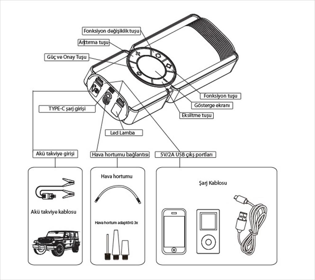 • Çıkıs: 5V/2.1A*2; 12V mars destegi